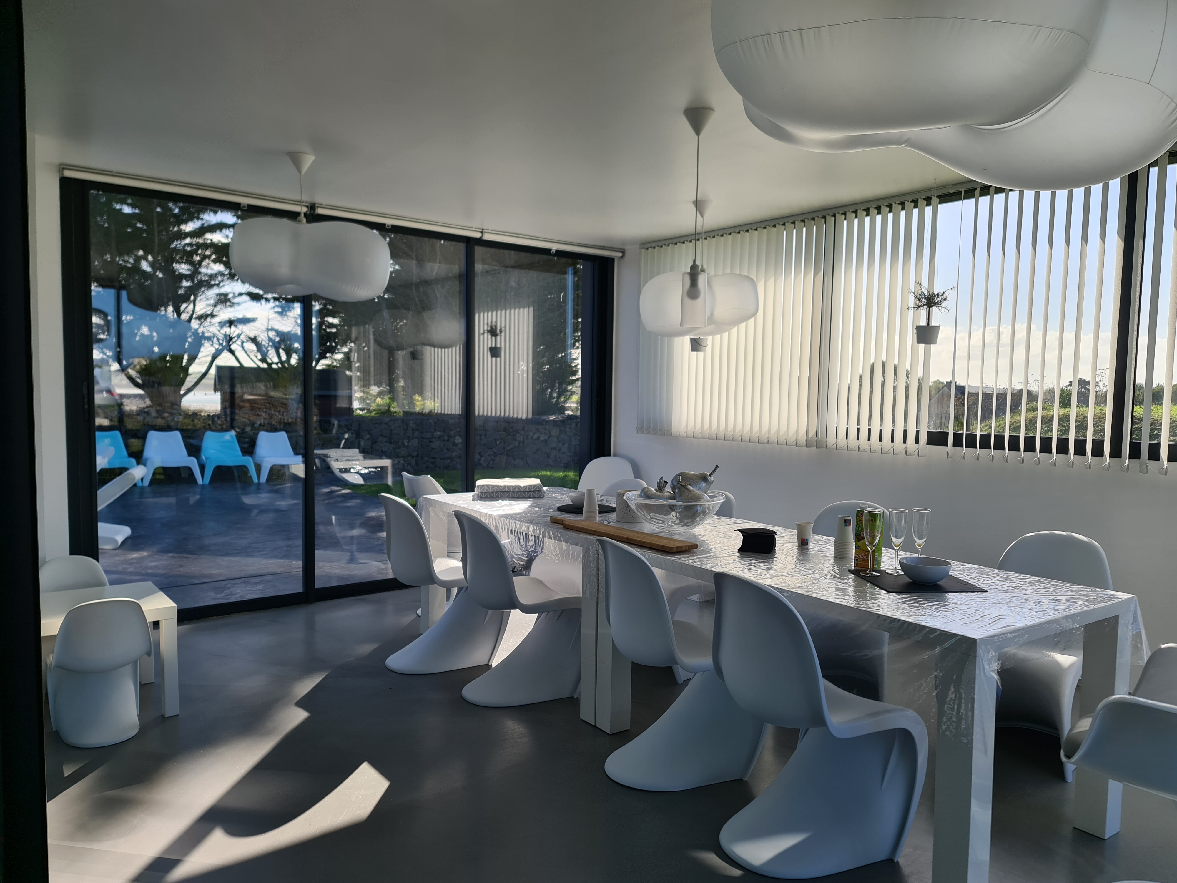 Plusieurs chambres sans fenêtre, portes coulissantes qui font bcp de bruit, pb insonorisation, débit de l eau faible. Il manquait les notices des appareils électroménagers, la plaque de cuisson a sauté, impossible de se préparer à manger de la journée. Manque place de parking. Plancha au gaz d une nullité, elle ne sert a rien. Une seule salle de bain commune pour 7 chambres pas pratique du tout. Le prix qui est exorbitant et non justifié. Propriétaire sympa mais malhonnête, nous avons eu un pb avc le rideau de la piscine, elle a fait passé ses amies pour des piscinistes et nous a facturé 150€ pour le reset du système de déroulage du rideau... Juste a appuyer sur un bouton ! A part ça très belle vue, une belle plage.
